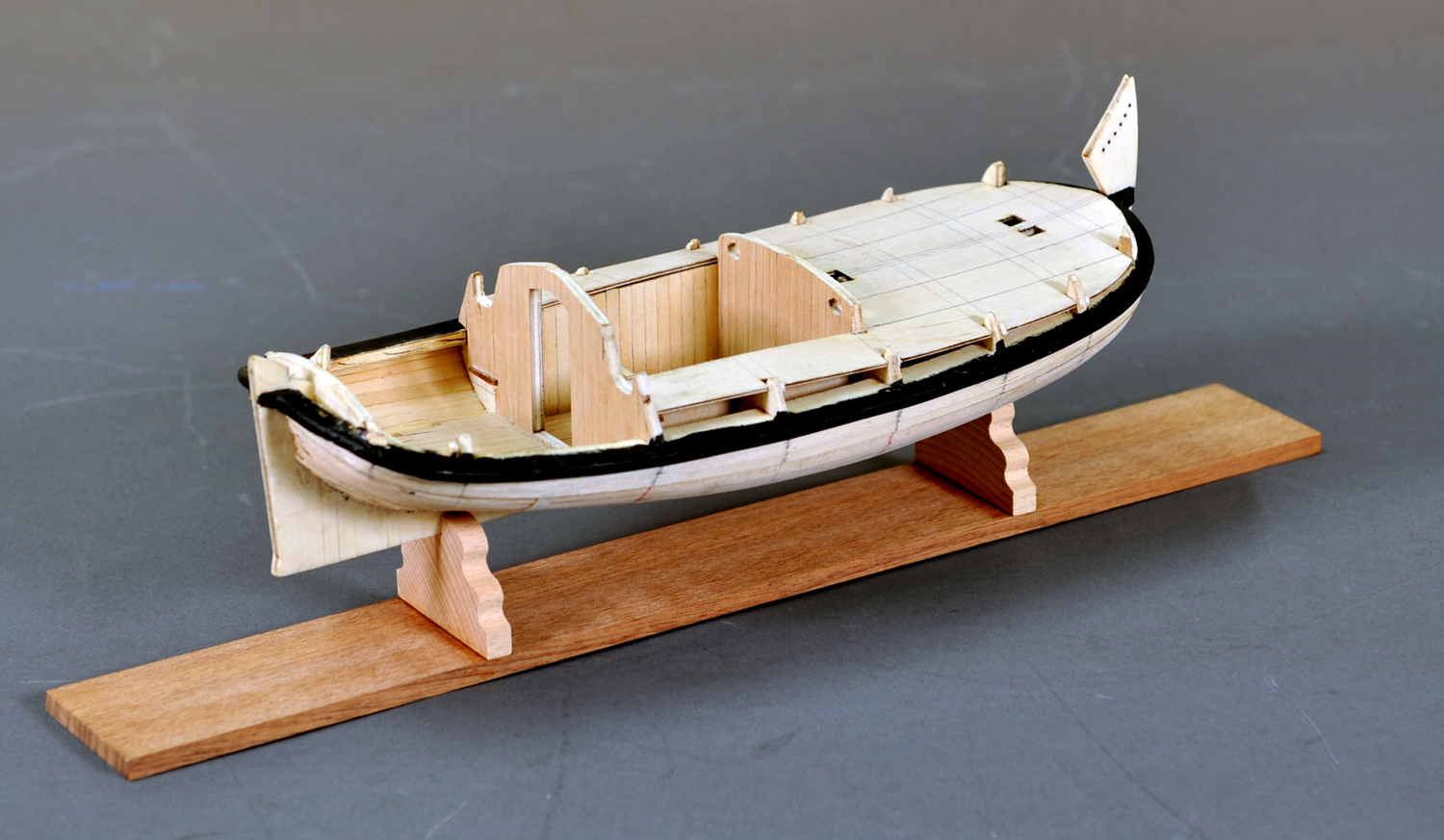 選帝侯マキシミリアン・エマニエル2世が1714年に製造し所有していた、優雅な装飾の遊覧船です。 ベンダーから帆船模型教室のキットにはと勧められ、製作することになったキットです。 現在製作中ですが、ウェル(船体補強板)を曲げるのにボキボキ折れたりして苦労し、 初心者向けでなく中級者以上のスキルが必要とするキットです。 モデラーとしては一度は製作してみたいと思うキットです。 |