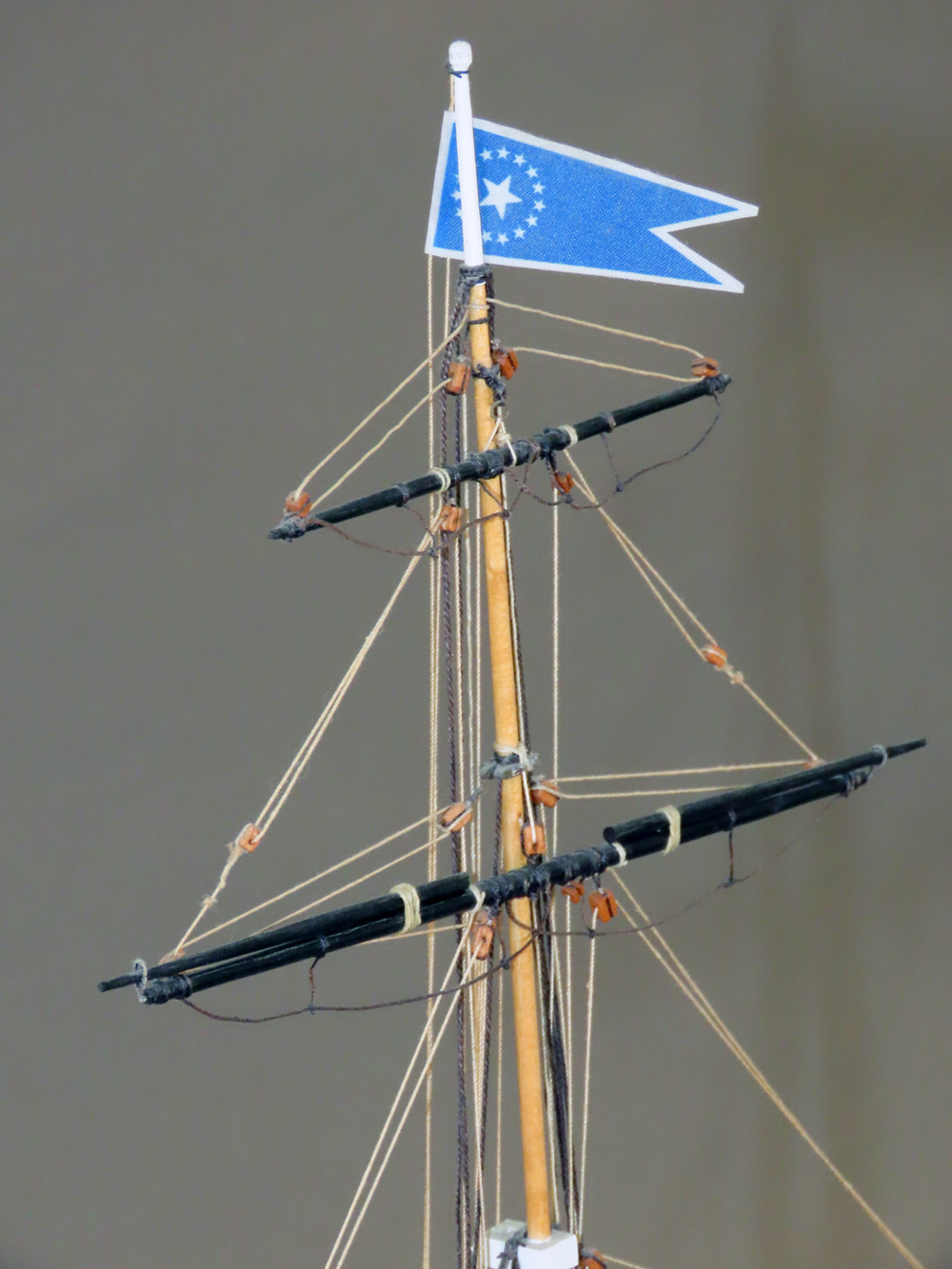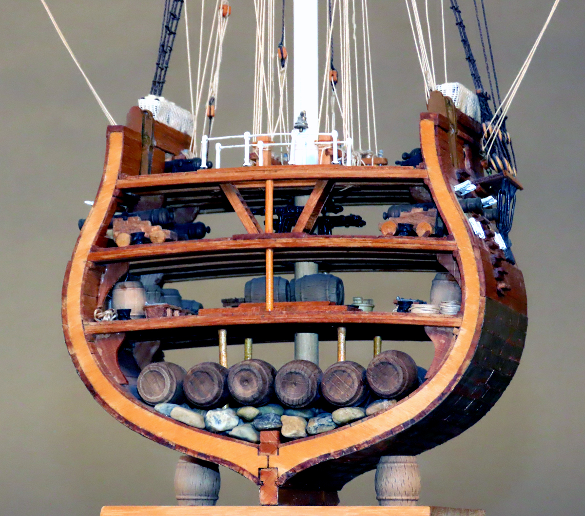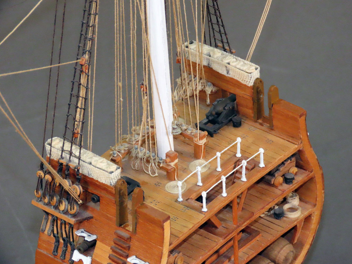 当時の帆船の構造を理解しようと製作したもので、いろいろ勉強になりました。 これを前後に延ばせば全体の構造模型になりますが、なかなかそこへは手を出せずにいます。