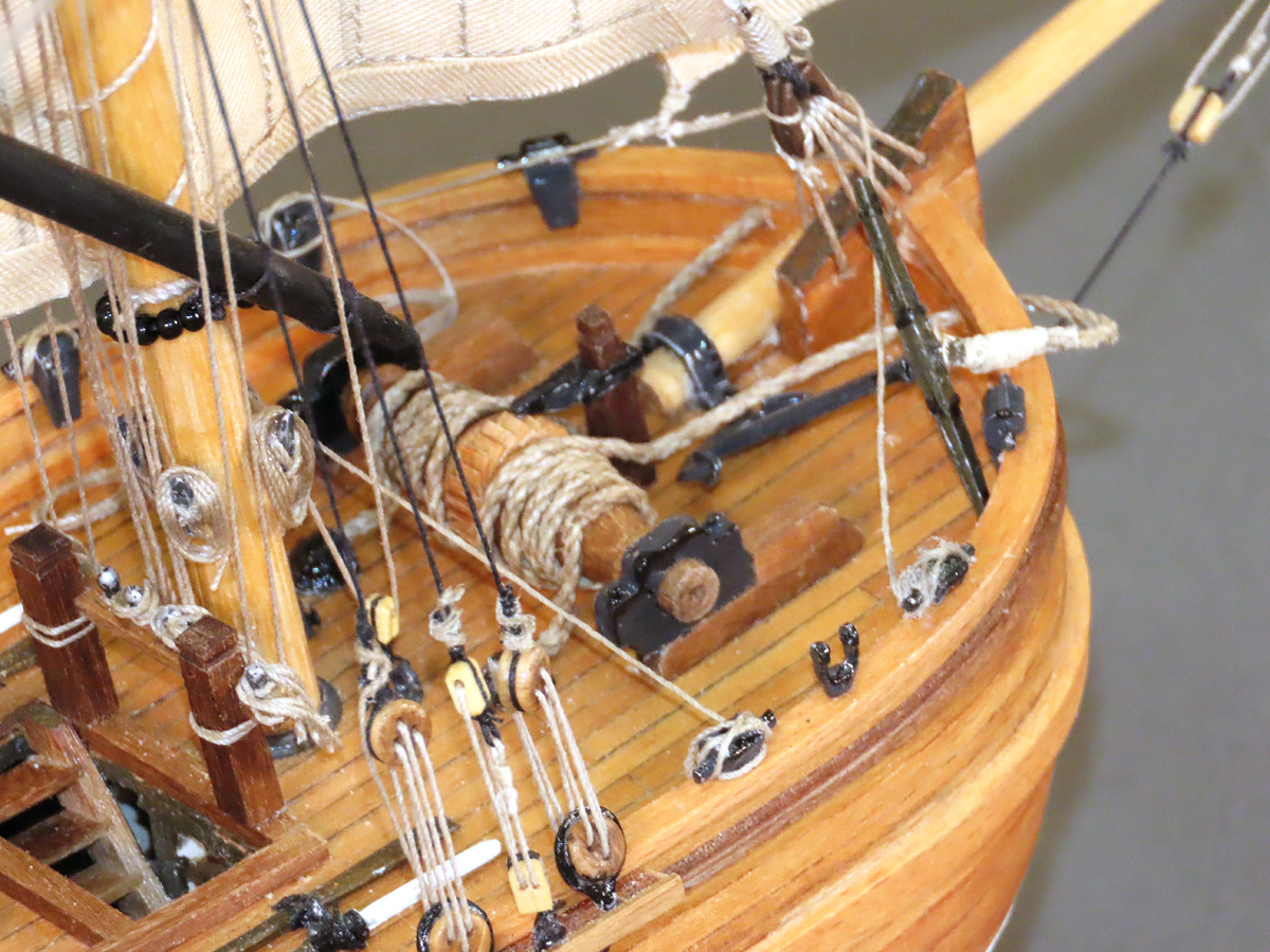 船の操作性向上のため、両舷に独特のスタビライザーが付いています。 この度、帆船模型作りに挑戦しました。全てが初めての経験で、手戻りもありましたが、 完成するととても充実感が味わえました。 各作業が次の工程にどう生かされるかを考えながら、次作に挑戦したいと思います。 |