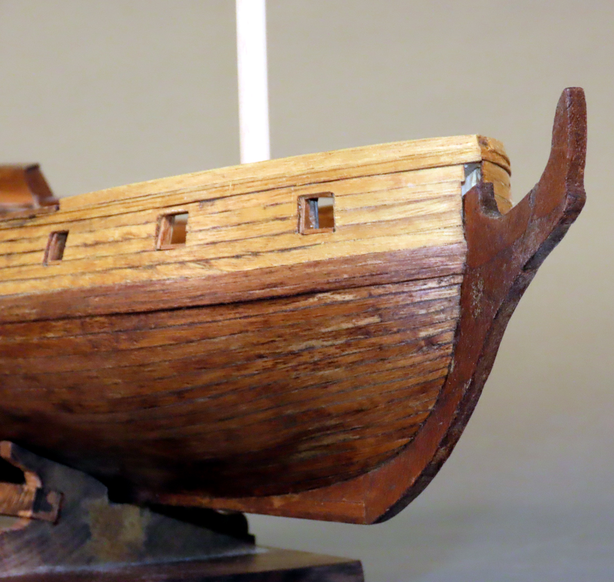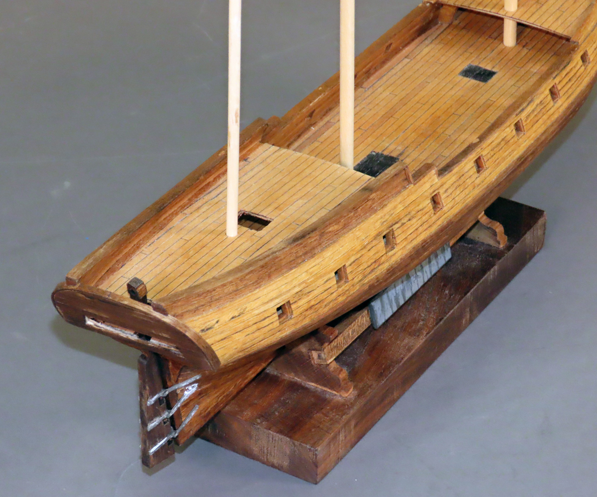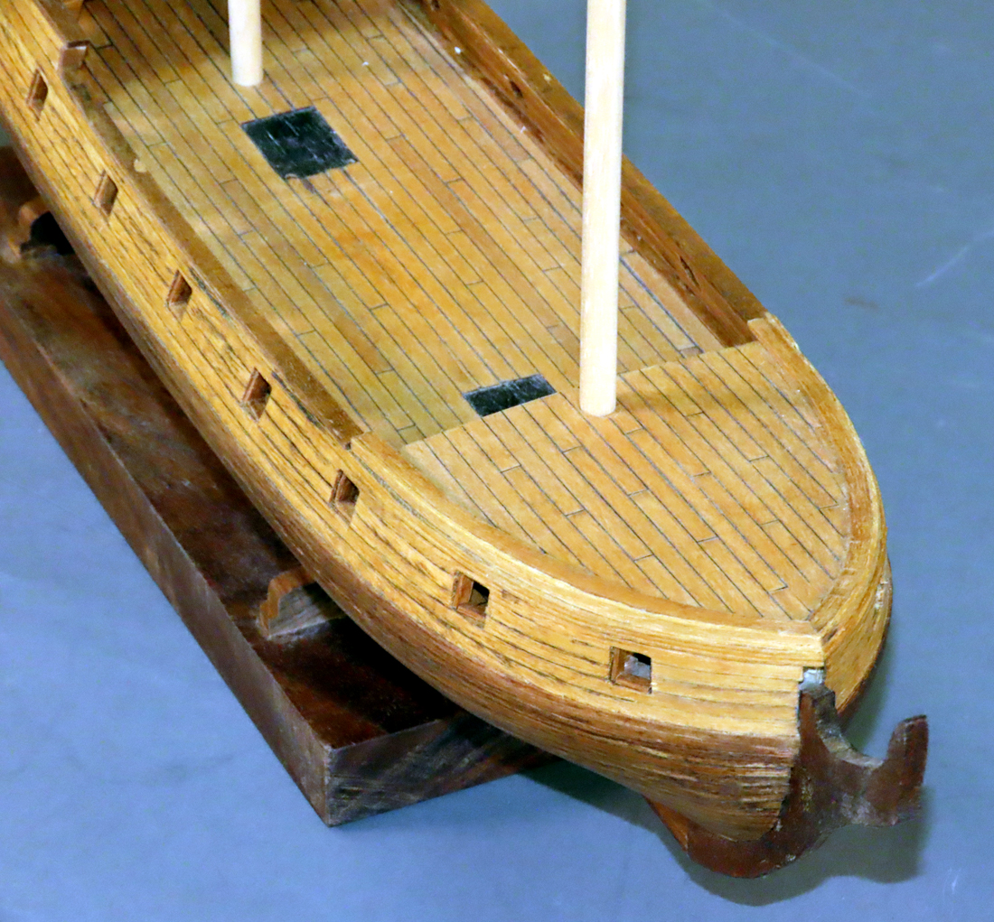 戦争中にイギリスに拿捕されて、正確な船図が採取されました。 本模型は2020年秋より造船開始、早くも5年が経ちました。 改造箇所は下記の通りです(予定を含む)。 @ キールをウォールナットに置き換え A 船尾はスクエアスターンに変更 B 甲板の板隙間には黒ケント紙挿入 C 舵は角材を貼り合せて製作 D 帆を製作 工程は遅れがちですが来年お盆竣工に向けて鋭意製作中です。 |