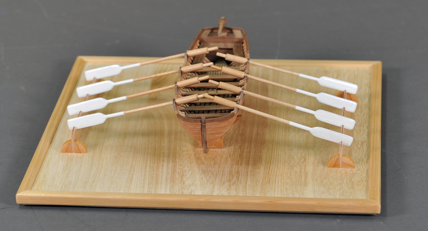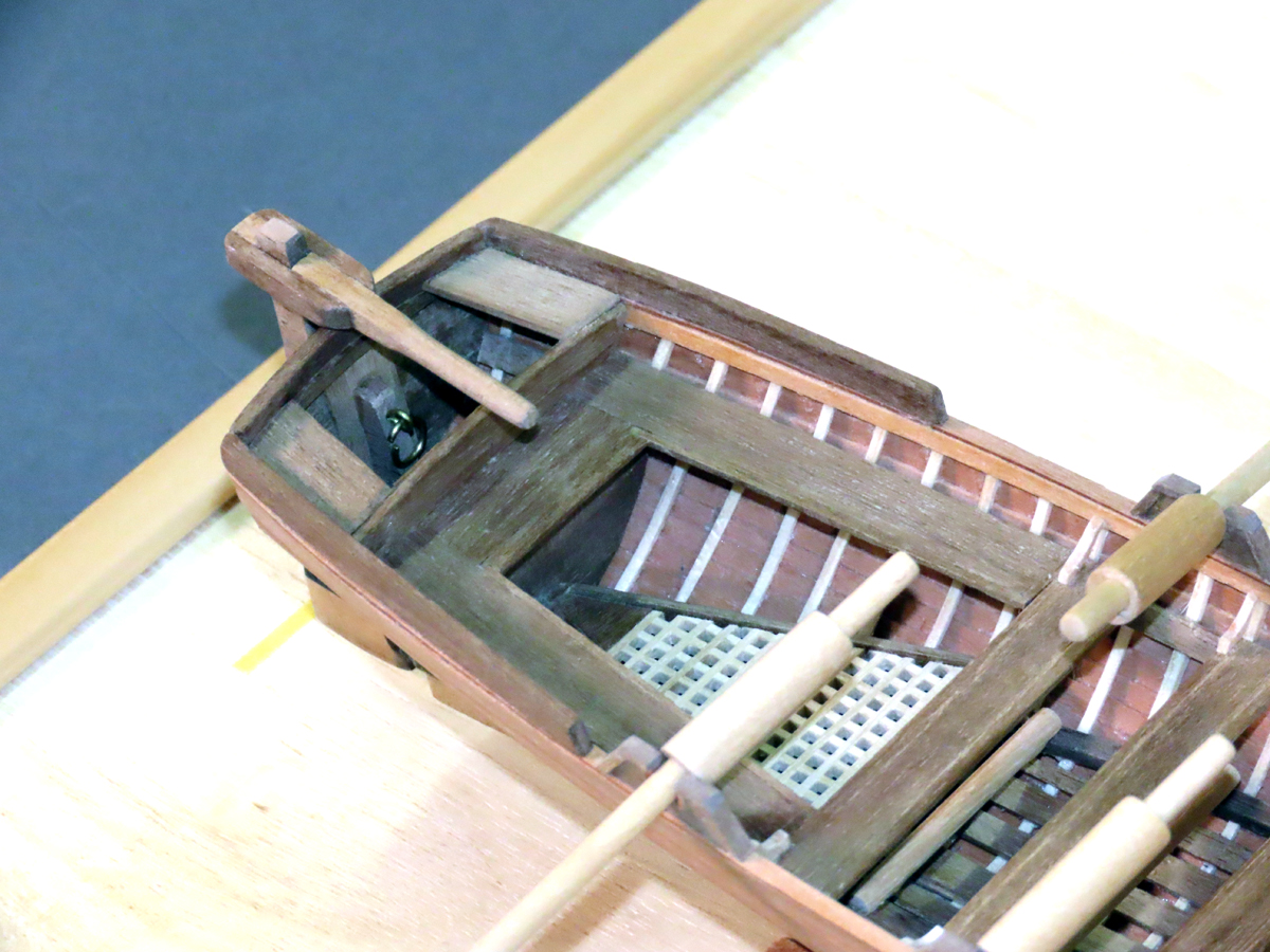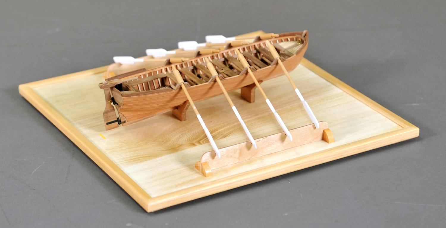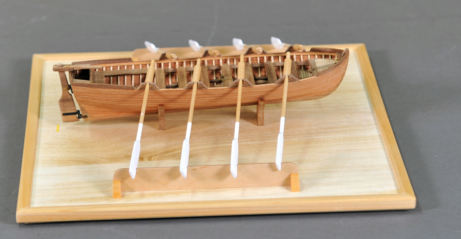 搭載されていたボートです。 本会の「スキルアップの会」でスクラッチビルドの課題として作ったものです。 船体の外板貼りでは左右のバランスを見ながら製作に気を付けました。 |