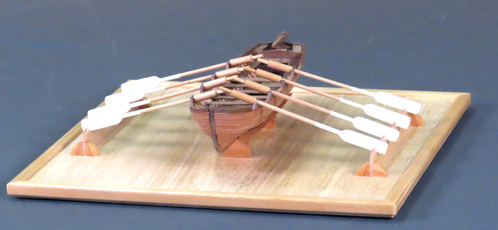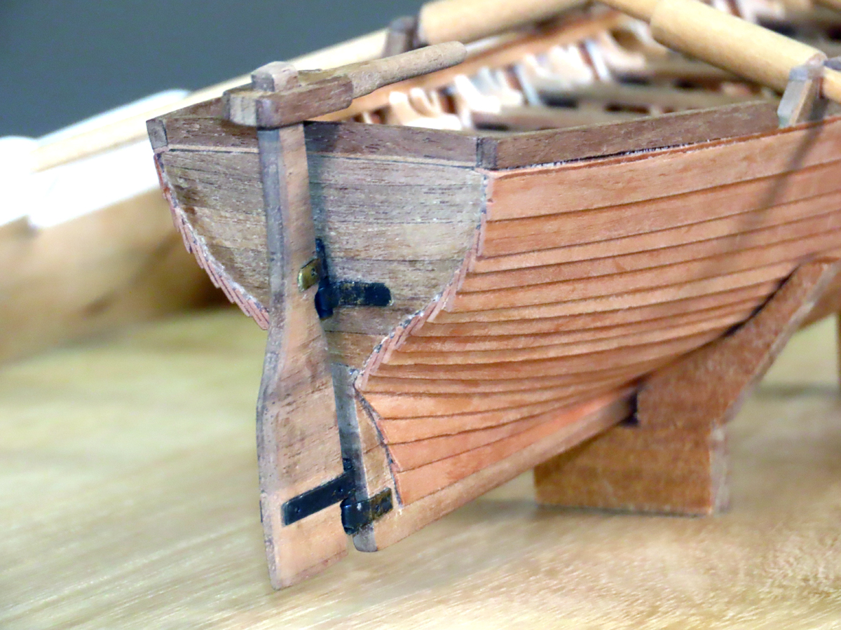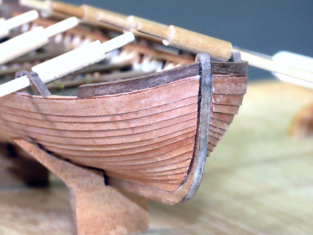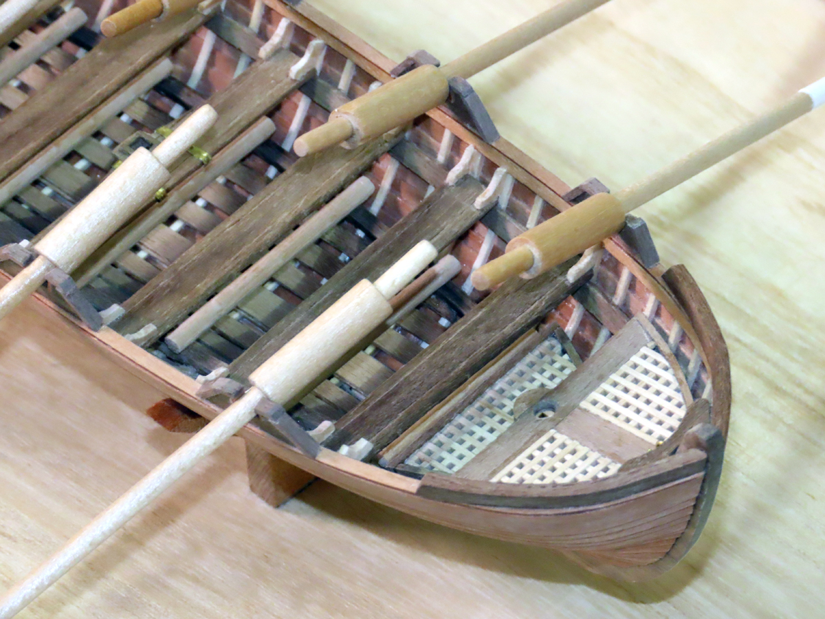 搭載されていたボートです。 本会の「スキルアップの会」でスクラッチビルドの課題として作ったものです。 船体の外板貼りでは左右のバランスを見ながら製作に気を付けました。 |